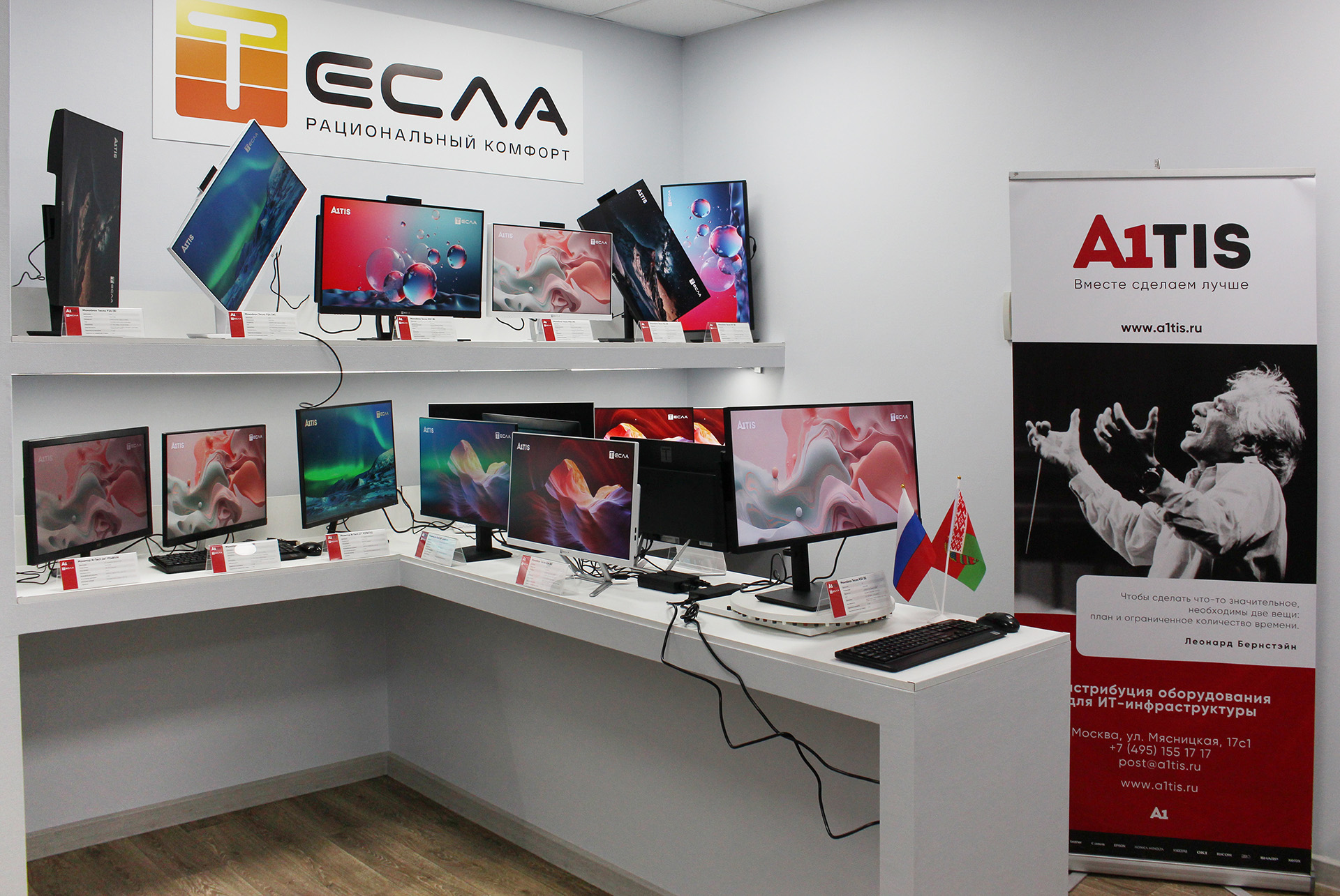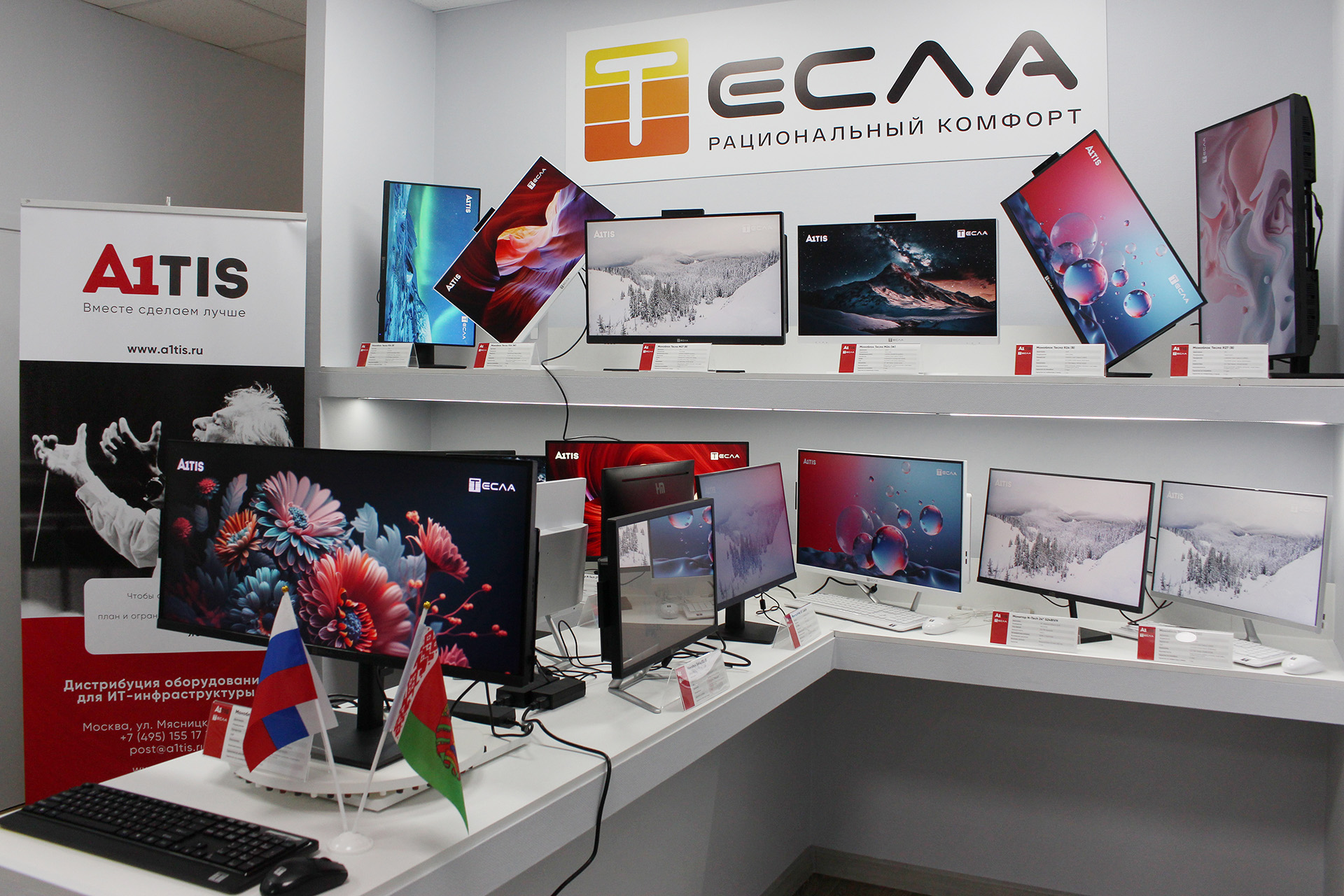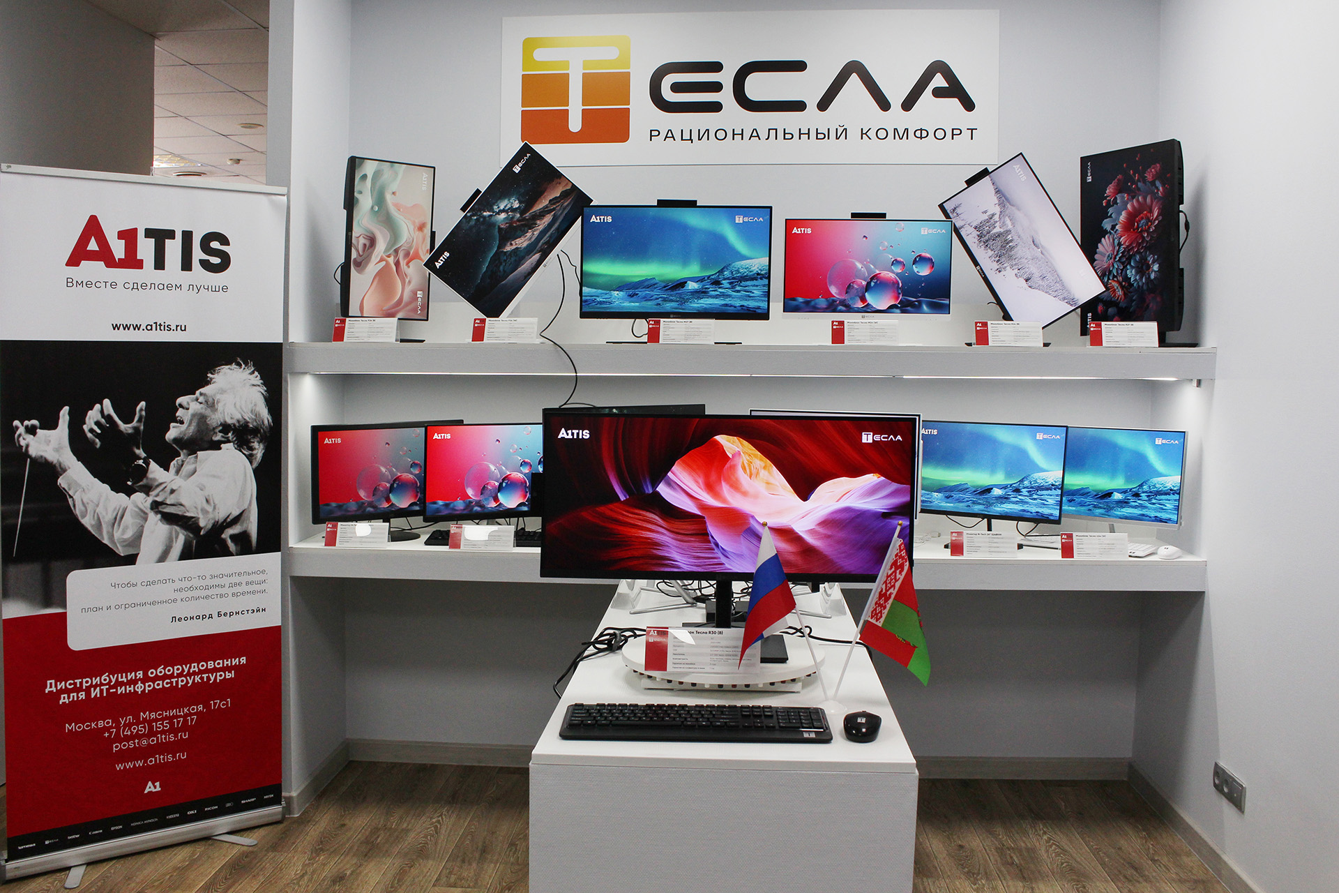 Белорусский брэнд Тесла ознаменовал свой приход на российской рынок подписанием эксклюзивного партнерского соглашения с дистрибутором A1TIS и открытием первого в России демозала моноблоков и мониторов. Церемония открытия с участием руководства A1TIS и ТЕСЛА состоялась 30 июня по адресу: Москва, ул. Мясницкая, 17с1.